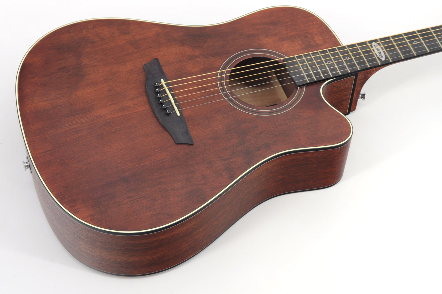 Equipado com encordoamento de aço (.011 / .048) e 6 cordas, o Strinberg SD200C SMS oferece um som claro e brilhante, com um equilíbrio perfeito entre graves, médios e agudos. O tampo, laterais e fundo em Sapele Laminado, combinados com o braço de Nato, garantem uma ressonância rica e uma projeção sonora excelente.